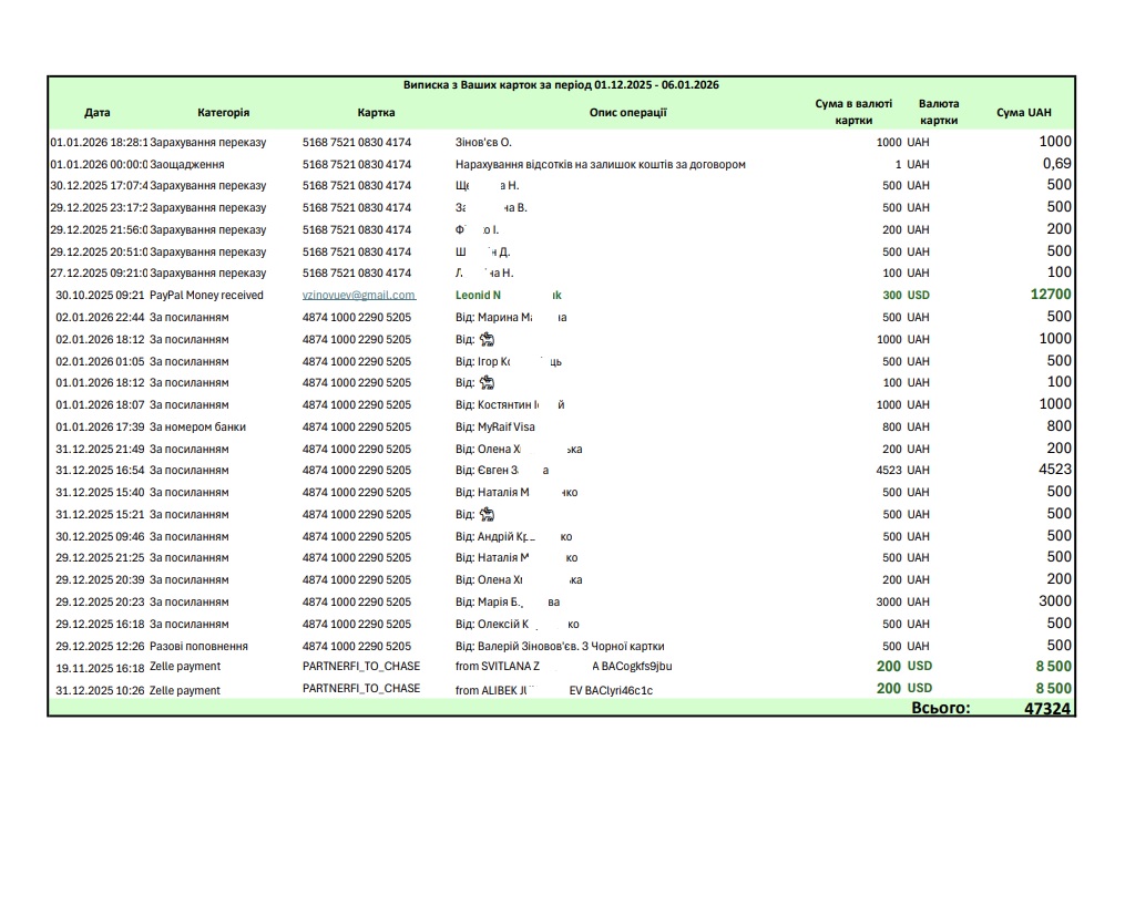 Різниця між зібраною сумою та фактичними витратами була покрита за рахунок власного внеску організаторів проєкту.